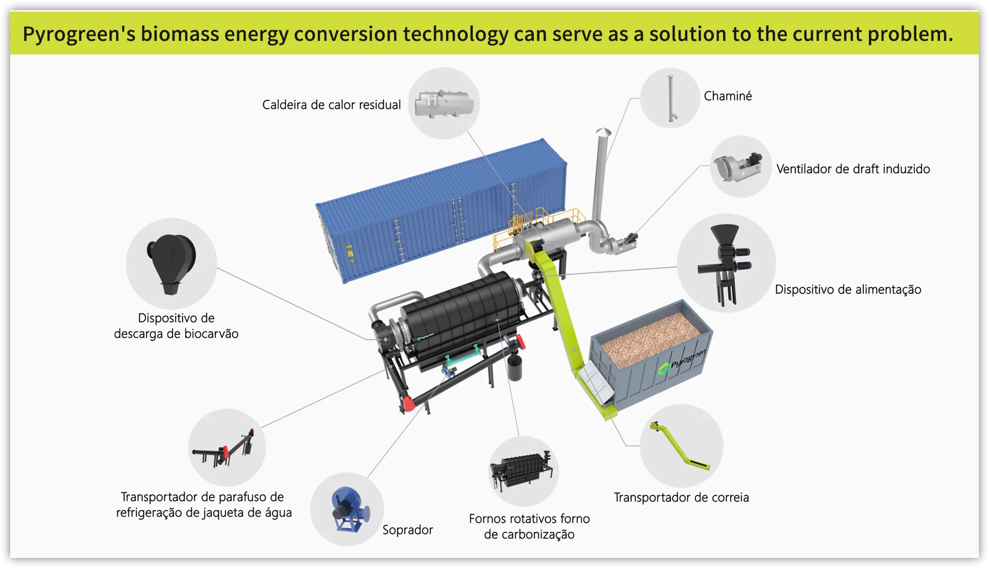 Sistema de Carbonização/Torrefação de Fornos Rotativos Pyrogreen Biomass
